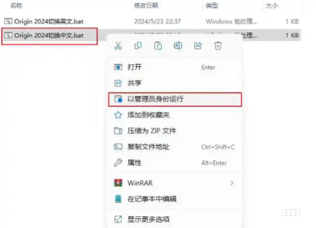 24、右击Origin 2024 切换中文,【以管理员身份运行】(会出现一个运行框,然后自动消 失),然后双击打
